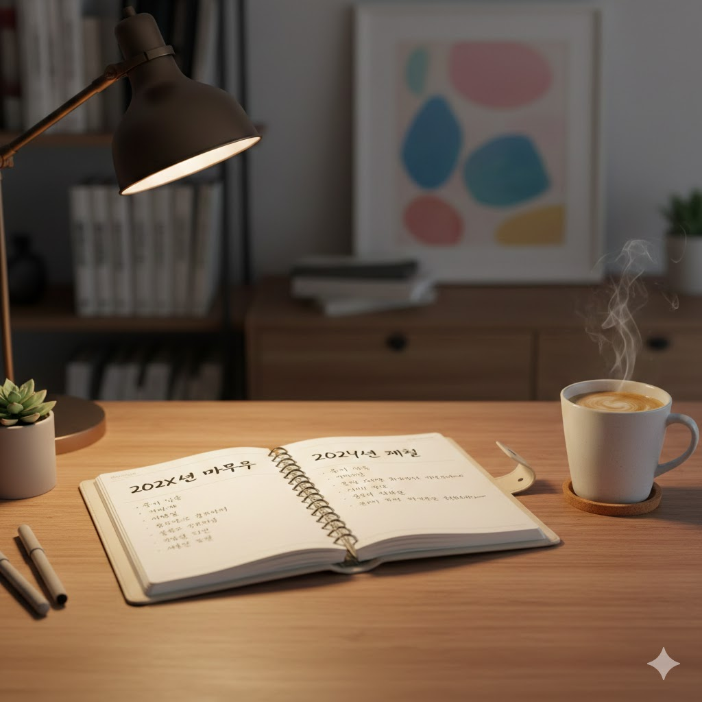 - 3대 핵심 목표 선정: 내년도 목표 중 가장 중요한 3가지(건강, 관계, 자기계발 등)만 추려 집중합니다.