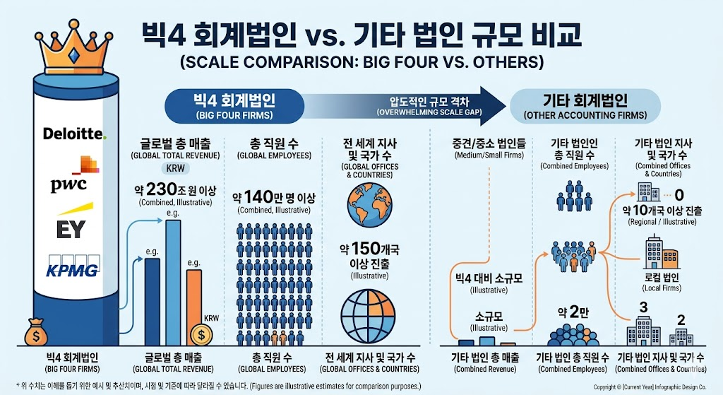 - 가 군 (Big 4): 삼일, 삼정, 안진, 한영 회계법인입니다. 글로벌 네트워크와 막대한 인력을 보유하고 있어 자산 규모가 큰 대기업이나 금융기관을 주로 맡습니다.