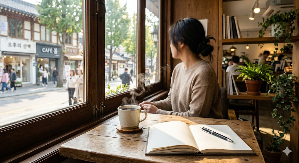 - 추천 루틴: 앞서 언급한 카페 루틴처럼, 집이 아닌 제3의 공간으로 떠나보세요. 노트북 없이 메모장과 펜 하나만 들고 가는 겁니다. 일주일 동안 고생한 나에게 하고 싶은 말 세 가지만 적어보세요. 거창한 일기가 아니어도 좋습니다. "이번 주 프로젝트 고생했어", "그때 그 말은 조금 서운했지?" 같은 아주 사적인 대화면 충분합니다.
